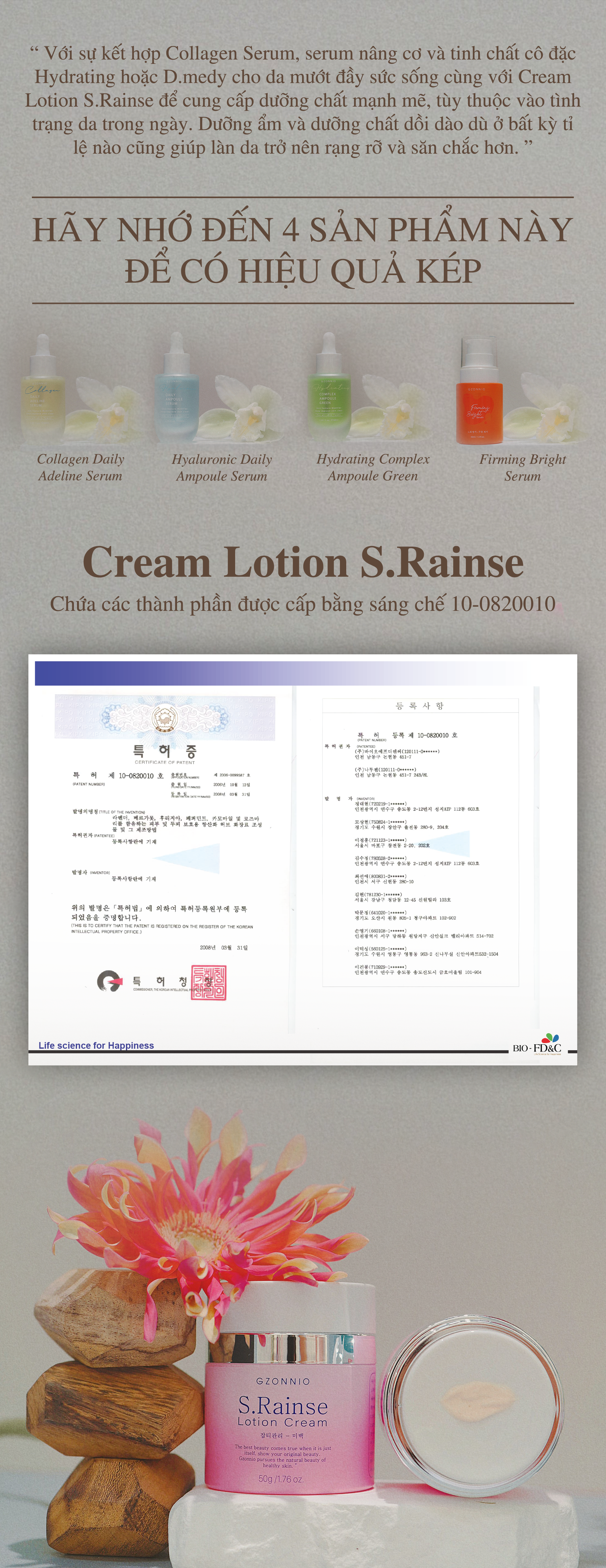 Cream Lotion S.Rainse - Kem Tái Sinh Gzonnio